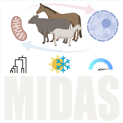 Le interazioni mitonucleari (MNI) sono considerate fattori evoluzionistici che mantengono l'integrità genomica delle specie, poiché molte funzioni cellulari dipendono dalla corretta interazione tra DNA mitocondriale (mtDNA) e nucleare (nDNA). Infatti, a causa del numero estremamente ridotto di geni del mtDNA, le funzioni mitocondriali dipendono fortemente da proteine codificate da >1.000 geni nucleari coadattati, come nel caso del sistema di fosforilazione ossidativa responsabile della produzione di ATP. Le funzioni mitocondriali sono centrali nel metabolismo energetico e nell’allocazione delle risorse, e l'entità degli effetti delle MNI sul fenotipo può variare notevolmente a seconda dell’ambiente. Pertanto, risulta fondamentale comprendere come le diverse combinazioni di varianti al mtDNA/nDNA si comportino in condizioni ambientali variabili per prevedere la risposta delle comunità animali a fattori di stress come quelli prospettati dagli scenari di cambiamento climatico. Per studiare adeguatamente le MNI, la disponibilità di genomi di riferimento annotati di alta qualità è un requisito chiave, insieme a popolazioni target altamente differenziate in termini di divergenza delle linee mitocondriali, specializzazione del metabolismo energetico e adattamento a climi contrastanti. Gli animali domestici rappresentano casi studio ideali per rispondere a questi interrogativi, poiché rispondono a tutti i prerequisiti di cui sopra. Per questa ragione MIDAS produrrà 180 sequenze genomiche complete e le analizzerà con gli strumenti bioinformatici più aggiornati (es., IA, Deep Learning) per studiare le MNI attraverso tre casi di studio relativi a specie, background genomici mitonucleari e interrogativi di ricerca differenti: 1) quanto la presenza di aplogruppi mitocondriali altamente divergenti influenzi le MNI (bovini); 2) quale sia il ruolo svolto dalle MNI nell'adattamento ad ambienti contrastanti (capre) e 3) se la specializzazione atletica possa essere guidata dalle MNI (cavalli). I dati e i risultati di MIDAS rappresenteranno un riferimento per future indagini sulle MNI a livello nazionale e potrebbero dimostrarsi strategici per migliorare la sostenibilità e la resilienza dei sistemi produttivi estensivi del nostro Paese riducendo al contempo l’impatto ambientale dell’allevamento.